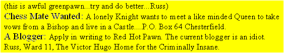 Game analysis, humor and instruction from chess enthusiasts around the world.